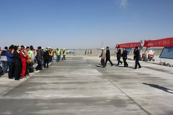 2017年4月27日,在敦煌機場擴建站坪舉行混凝土道面封倉儀式。